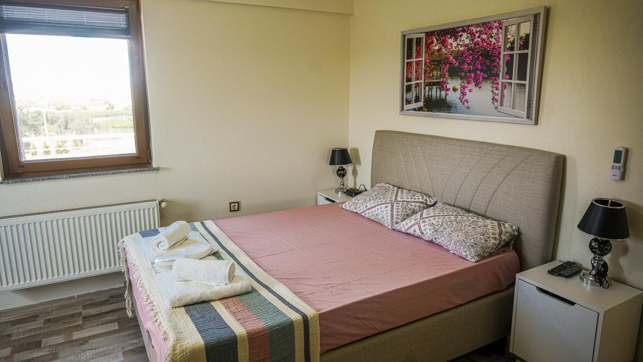 Arisba Çiftlik Evi’nin özenle tasarlanmış odaları, konfor ve huzuru bir arada sunar. Doğal ışık alan ferah yapısı, modern mobilyalarla buluşarak misafirlerimize sıcak bir ortam sağlar.